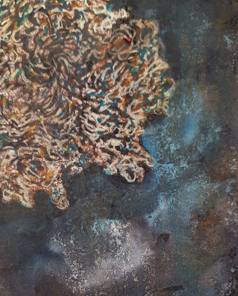 Mixed media collagraph, natural pigments & watercolour