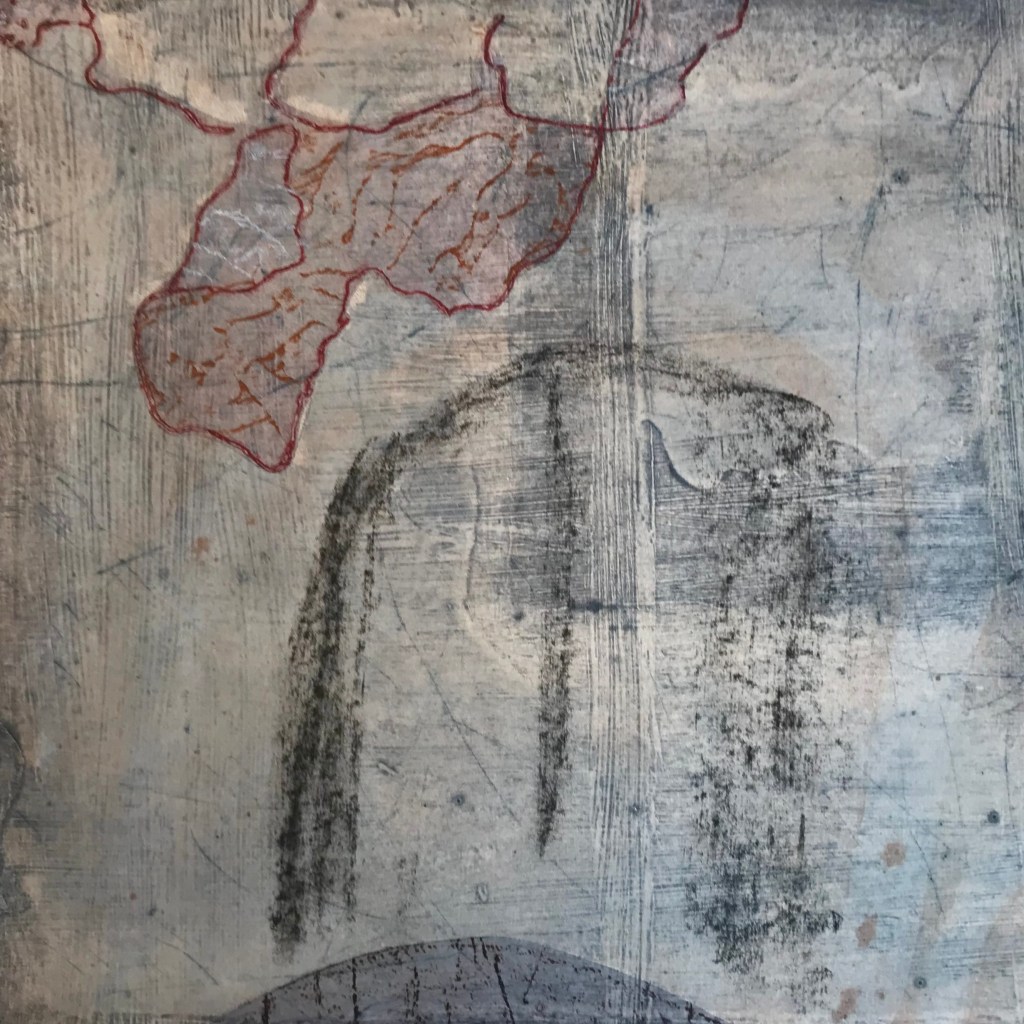 I love the bush where I live in Dja Dja Wurrung Country. My work is about the bush at home, National Parks, and Conservation Areas. I use various printmaking techniques together with collage and drawing. The works in this show refer to the bush at home, and Gundabooka and Cocoparra National Parks.