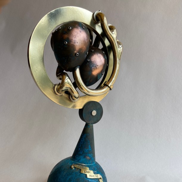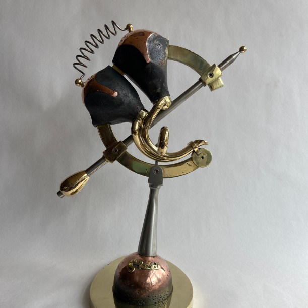 I have always been fascinated by things mechanical, probably stemming from a childhood spent in a Welsh coal port among the relics of the steam age, already obsolete. My sculptures are the result of long hours spent in my workshop, with the inspiration coming largely from the work itself.